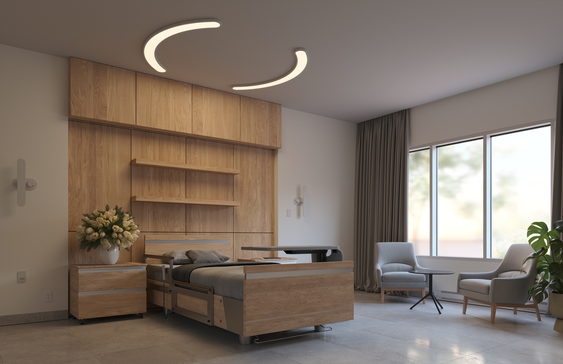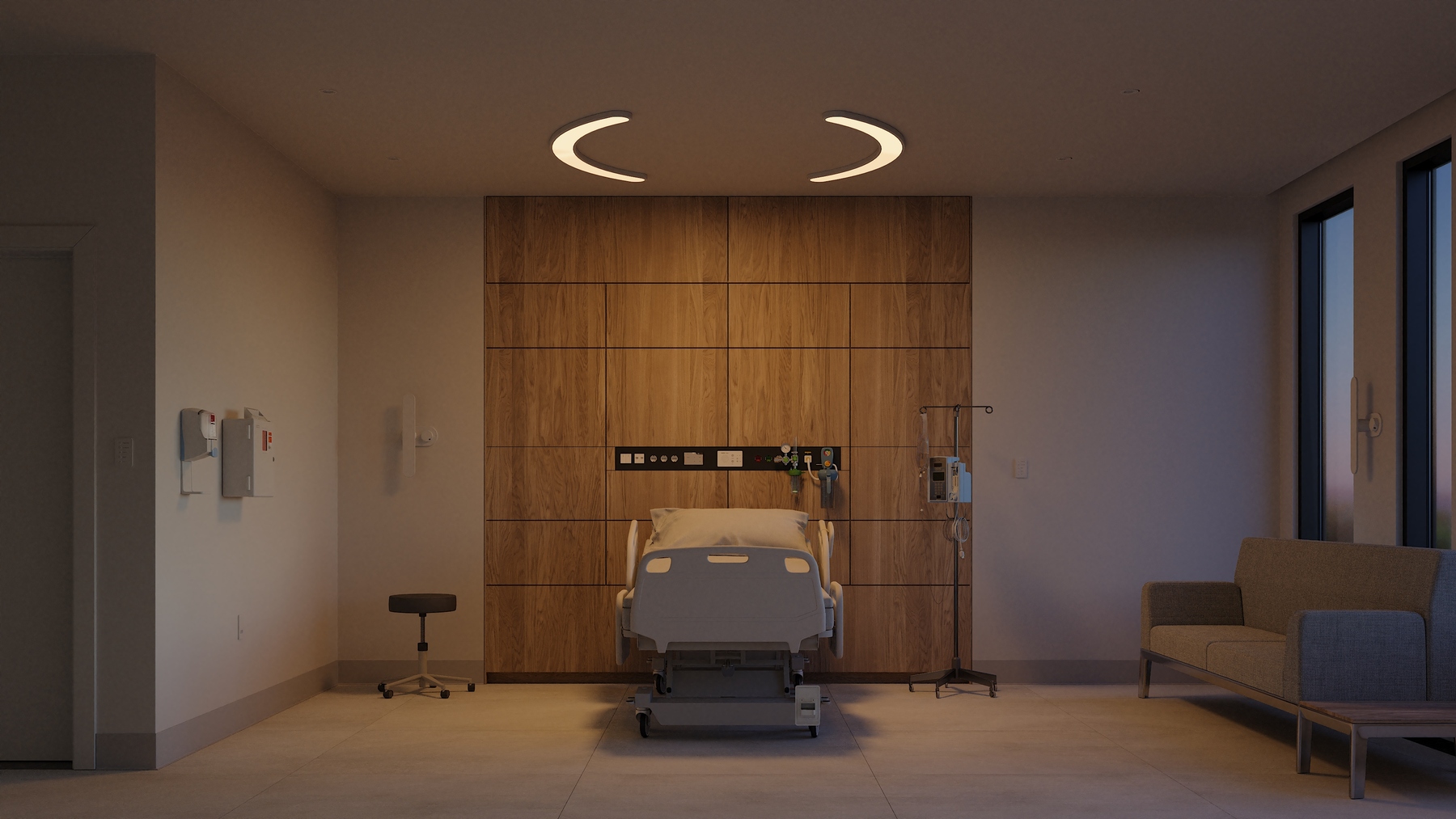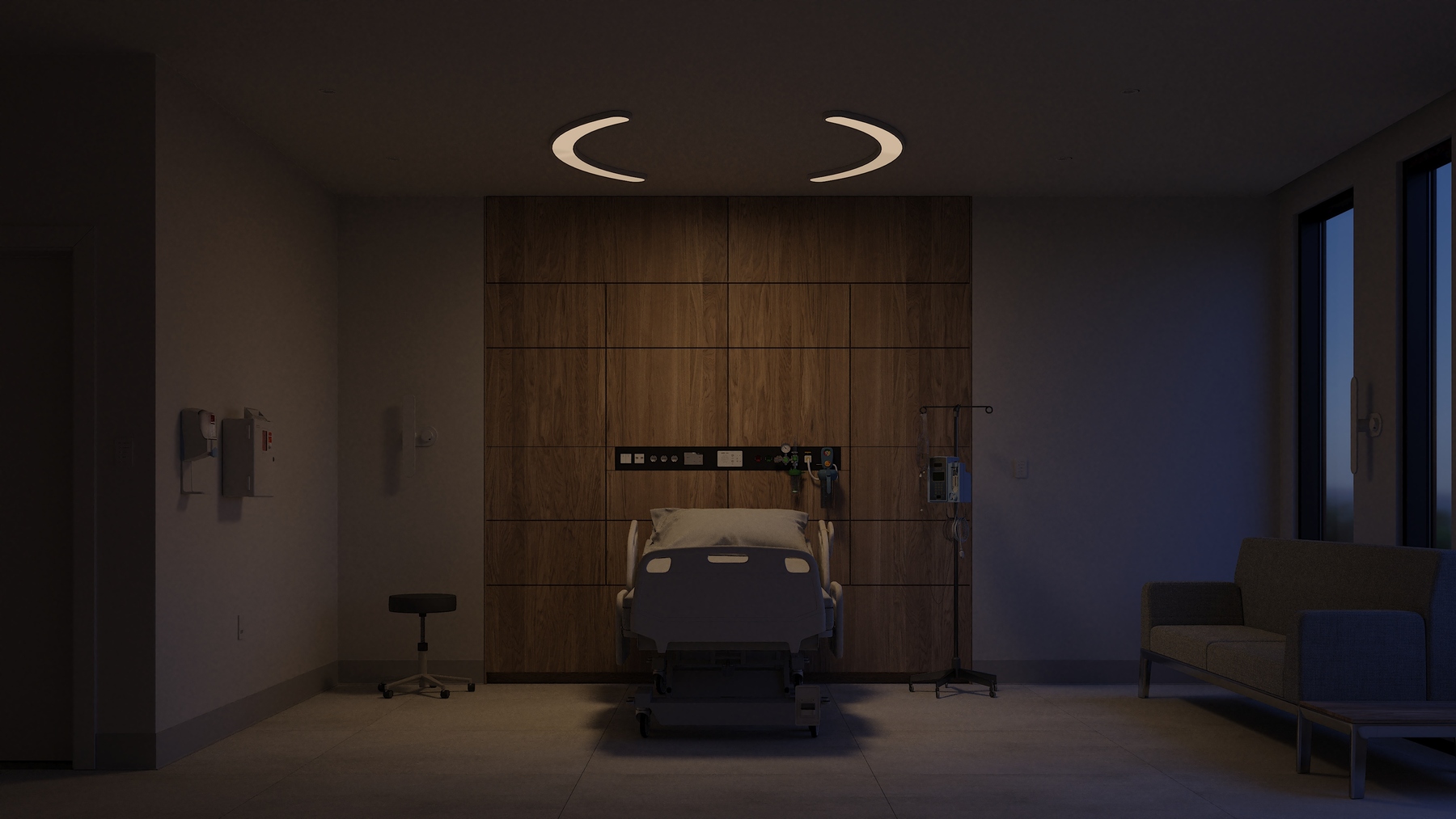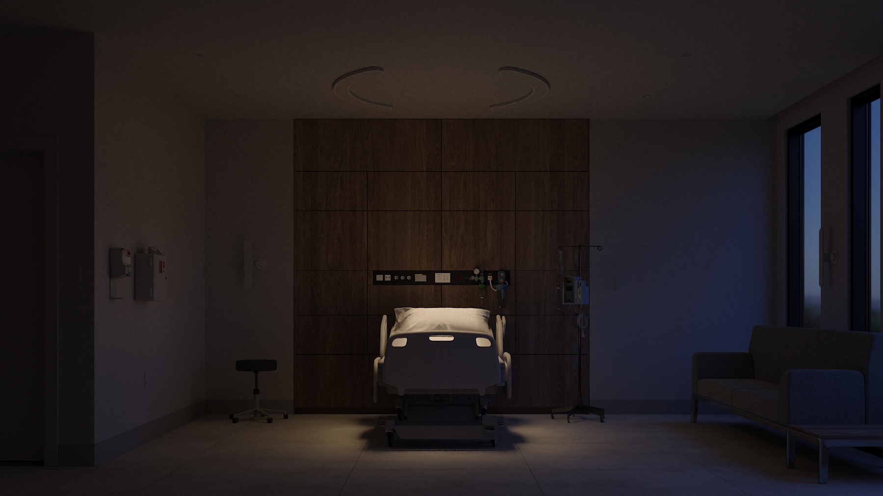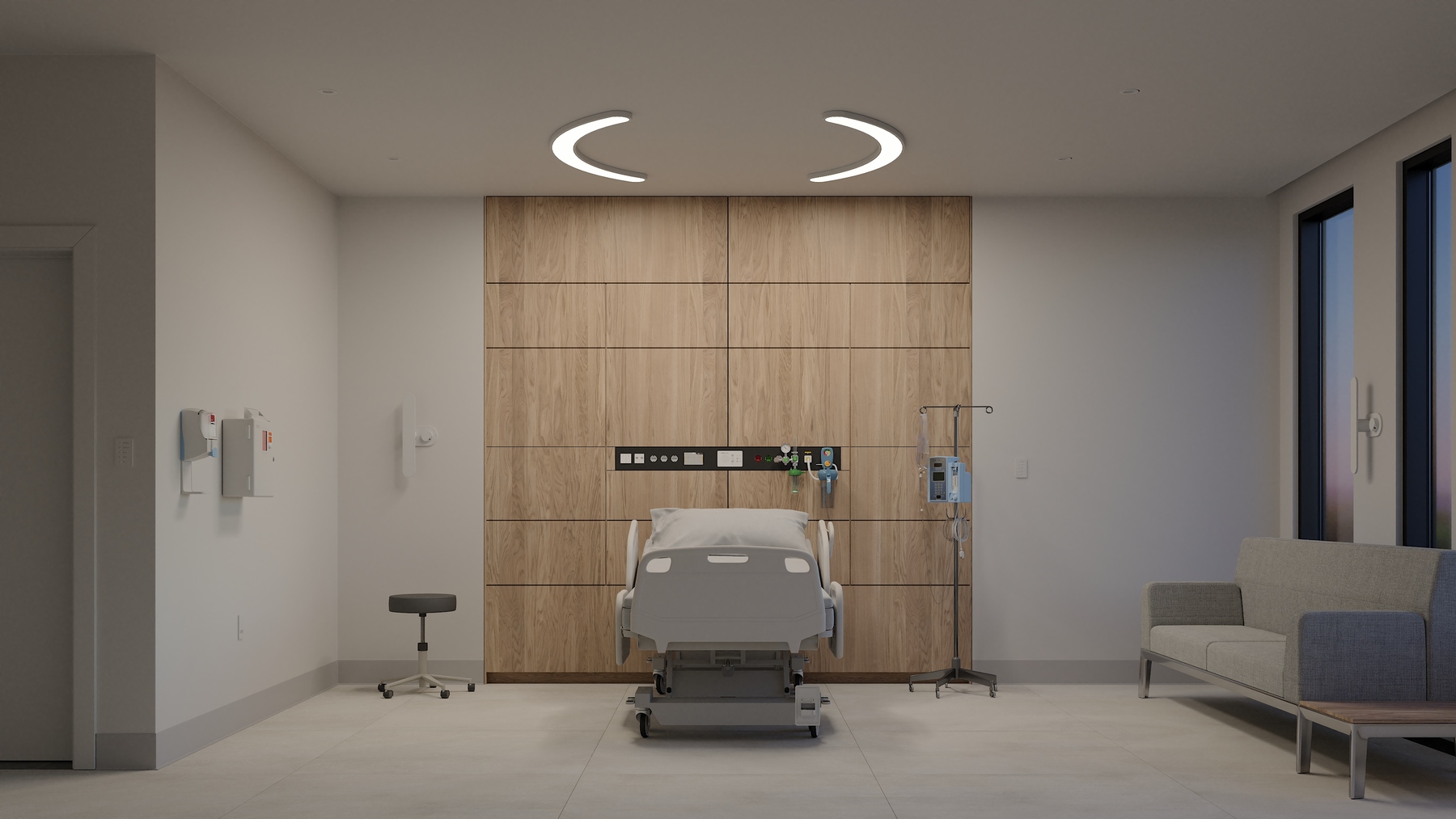- Surface-mount to simplify installation and provide more freedom for designing around spaces with shallow plenums and crowded patient room ceilings
