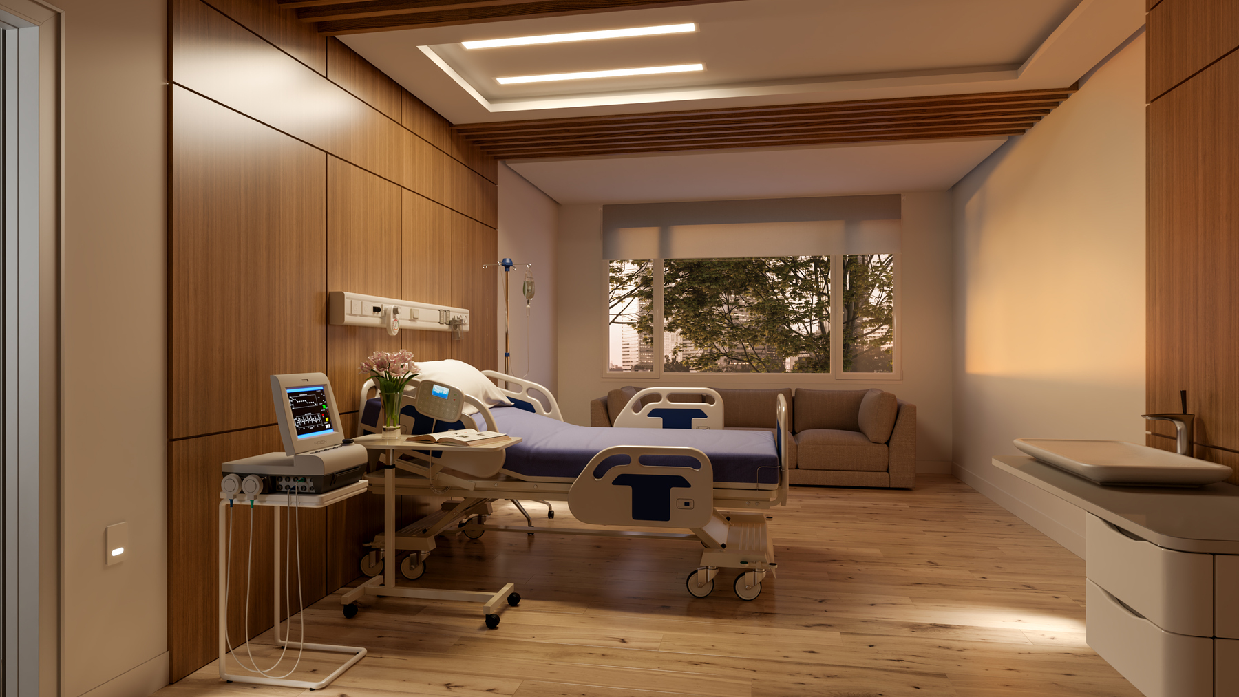 - Modes: ambient, exam, and reading or night light functions within the same luminaire